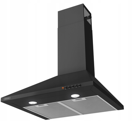 Nowoczesny okap o klasycznych, prostych liniach w głębokim czarnym kolorze. Minimalistyczny wygląd pasuje do kuchni nowoczesnych, loftowych i vintage. Wykonany ze stali nierdzewnej.