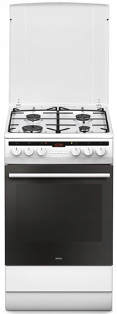Wolnostojąca kuchnia gazowo-elektryczna 50 cm w kolorze białym, klasa A. Posiada 4 palniki gazowe z zabezpieczeniem przeciwwypływowym i elektryczną zapalarką w pokrętle oraz bardzo pojemny piekarnik elektryczny 65 l z termoobiegiem, programatorem elektronicznym Ta oraz szybkim nagrzewem. Idealne rozwiązanie dla osób ceniących funkcjonalność i bezpieczeństwo.
