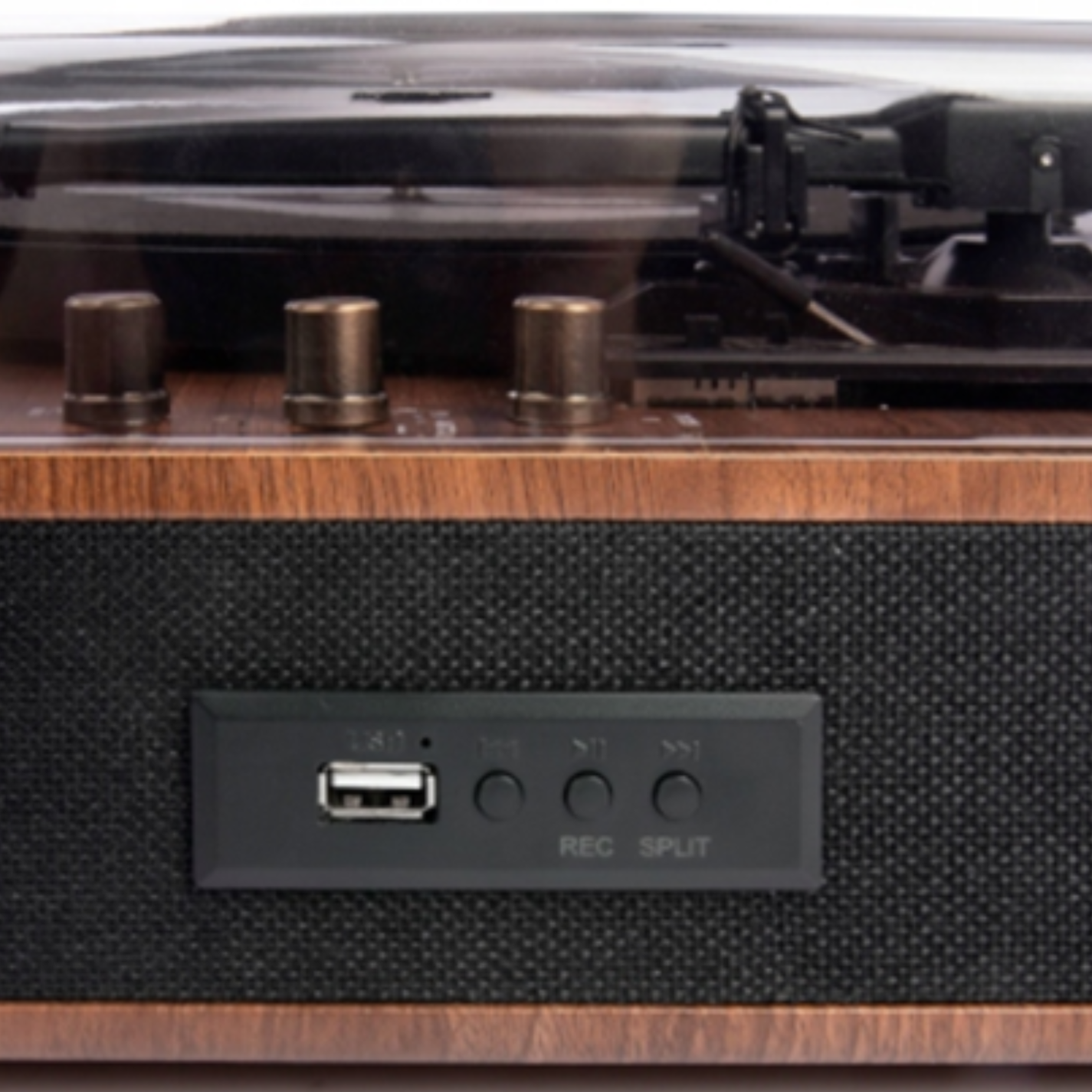 Obsługa 33, 45 i 78 RPM pozwala odtwarzać wszystkie typy płyt. Bluetooth umożliwia bezprzewodowe przesyłanie muzyki, a USB pozwala odtwarzać i nagrywać pliki audio.